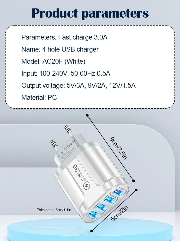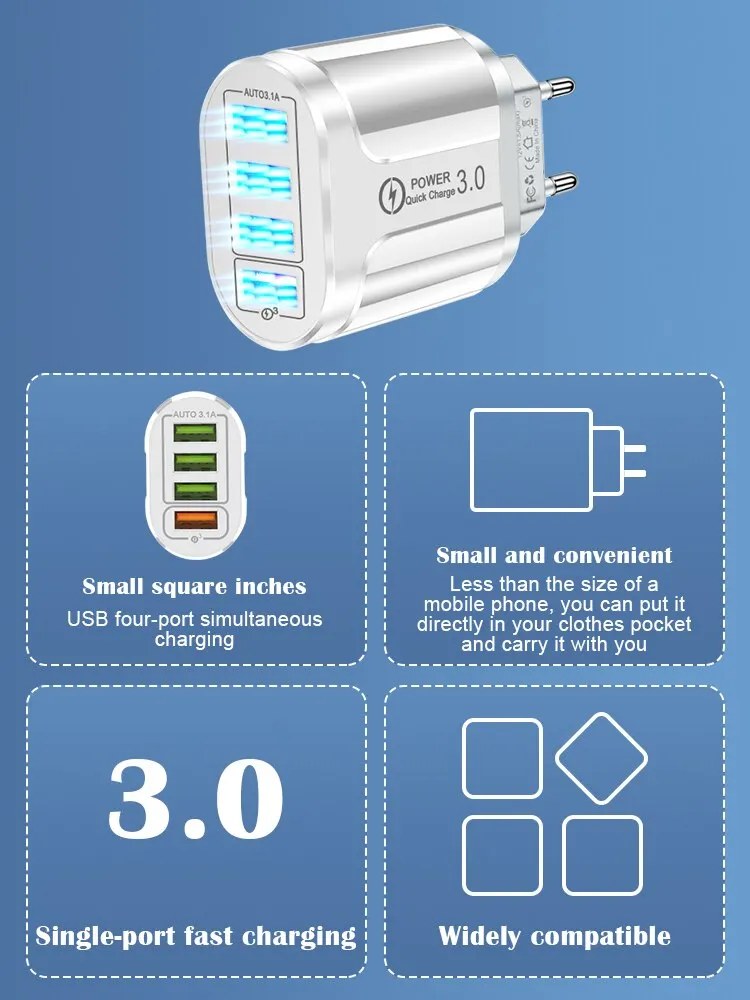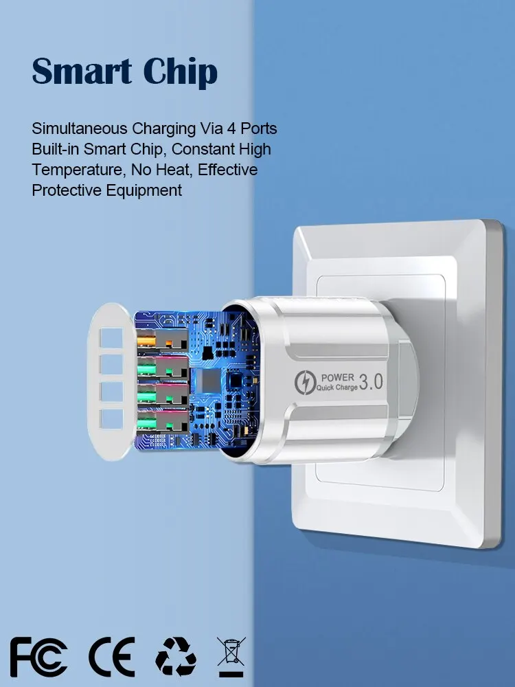 • Carregamento rápido: Carregue até 4 dispositivos simultaneamente com recursos de carregamento rápido.