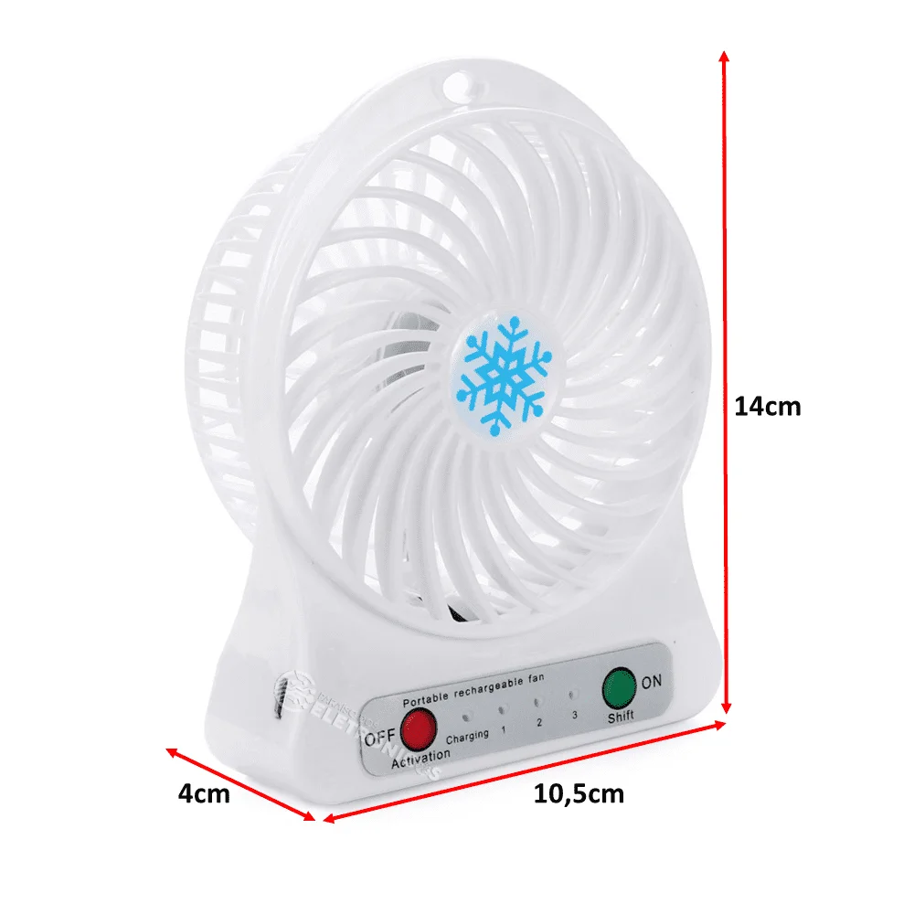 A sensação do momento é o ventilador portátil, a estrutura é muito firme e elegante, tamanho compacto e livre de fios cabendo em qualquer lugar, podendo se usar para múltiplas coisas, como ventilar o ambiente ou secar a maquiagem, com três níveis de ventilações você não irá passar calor. Podendo ser ligado através de bateria recarregável e também por meio de um cabo USB, contém uma bateria de longa vida, durabilidade e desempenho. Não se preocupe pois a bateria é sustentável, não agredindo a natureza.